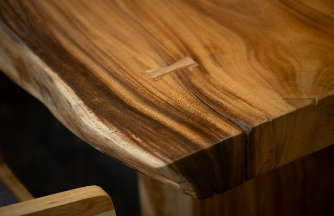 Undulating wood grains on the Majestic Live Edge Dining Table