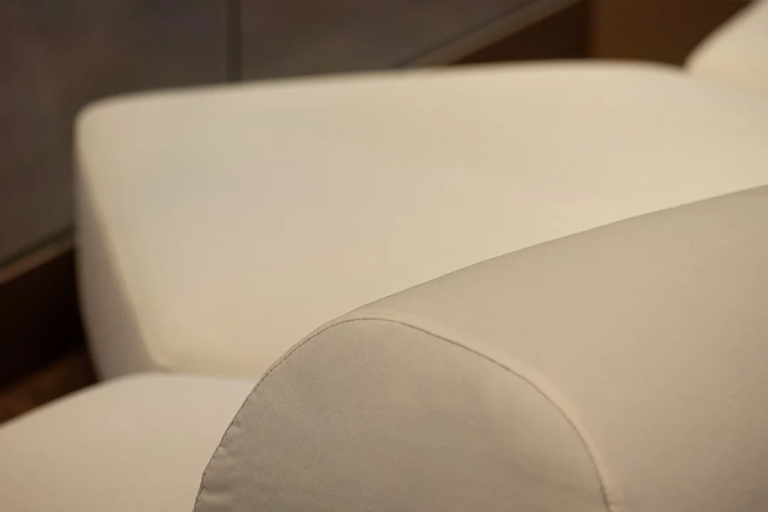 The Bend Upholstery Collection features sculptural free flowing lines or geometric shapes combined with exceptional detailing like fine tailored intentional stitching, french seams, piping, back rolls and detailing, hand hammered studs, pleats and deep tufting.